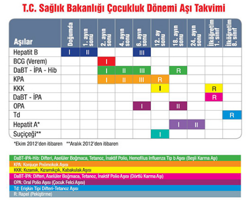 Sağlık Bakanlığı’nın aşı takvimi şöyle: (9.aydaki eklenmemiş)