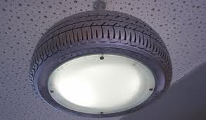 Araba lastiğinden avize de yapılmış. Bu da enteresan bir fikir.