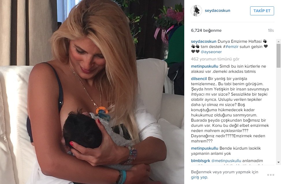 Son günlerde emzirmeyle ilgili olarak gündeme geldi. “Meme cinsel bir objedir. İki aydan sonra emzirmeye karşıyım.” diyerek gündem yarattı. Kendisi de sadece iki ay emzirdiğini ifade etti. Tabii kadınlar ve emzirme destekçileri karşı çıktılar. Haklılar, zira anne sütü gibi yararlısı yoktur. Hiçbir gıda anne sütünün yerini tutamaz. Aynı cümleyi başkası kursa sapıklıkla itham ederdi. İnsan vücudunun tahrik malzemesi olamayacağını söylerdi..