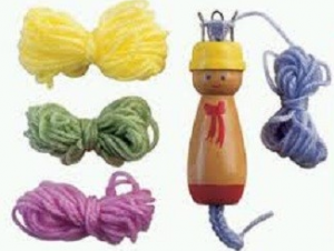 1 tuvalet kağıdı rulosu, 4 adet dondurma çubuğu, 1 adet ebruli yün ip ve yapıştırmak için bant. Aşağıda gördüğünüz gibi tuvalet kağıdı rulosunun etrafına dondurma çubuklarını eşit mesafede yapıştırın.