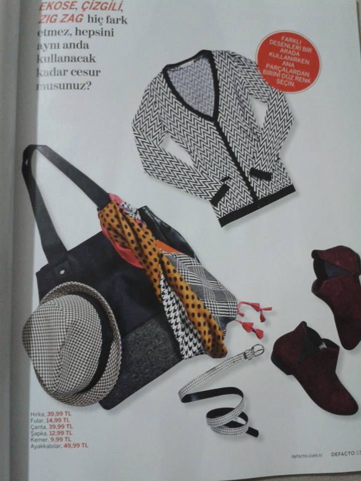 Birçok ünlü markanın sonbahar-kış koleksiyonlarında ekose ve zigzag modelli kombinasyonlar mevcut. Eteklerde, elbiselerde, bluzlarda, pantolonlarda, kemer de cüzdanlarda bile bu desenleri görmek mümkün. Serin havalarda hemen üzerinize alabileceğiniz pançolar da şık duruyor. Sonbahar olması sebebiyle de genelde koyu renkler hakim. Kahverengi ve siyah renkler en çok kullanılan renkler arasında.