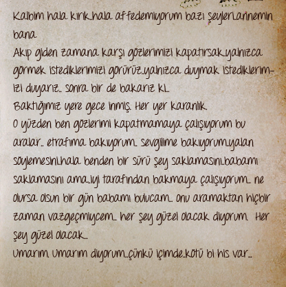 Zeynep’in arada sırada yazdığı günlükler var. İşte o günlükten bazı sayfalar…