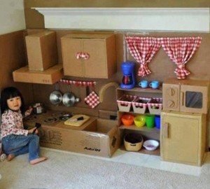 Aşağıdaki resimde gördüğünüz oyun köşesini örnek alarak siz de kendi çocuğunuz için bir köşe hazırlayabilirsiniz. Bunun için bolca kartona ihtiyaç var ki bulmak zor değil. Ücretsiz olarak marketlerden de temin edebilirsiniz. Kız çocuk için mutfak konsepti, erkek çocuk için tamirhane konsepti oluşturulabilir. Kendilerine ait olan bu köşeler onların çok hoşuna gidecek ve hayal dünyalarının gelişimine, sorumluluk hislerinin oluşumuna katkınız olacak.