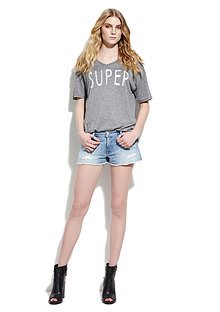 Çekimlerde iddialı pozlar veren Serenay bu pantolonları ve şortları tanıttı.