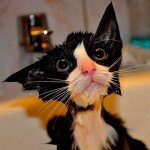 Islak bir kedi ile kuru bir kedinin farkını da böylece görmüş olduk. Biraz sinirli gibi görünüyorlar =) Bu fotoğraflar tamamen gerçektir.