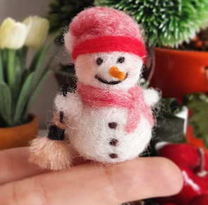 Yünden diyelim.. Çünkü yün, özel çentikli iğneyi batırdıkça keçeleşiyor, sertleşiyor. Mini figürleri de tamamen yünden, herhangi bir tel, boya, kalem vs. gibi ekstra malzeme kullanmadan sadece iğne yardımıyla şekillendirerek yapıyorum. Sitemde tekniğe dair kısa kısa bilgiler yer alıyor, ilerleyen zamanda daha da detaylandırmayı düşünüyorum, merak eden olursa isterlerse keceinadi.com’dan okuyabilirler.