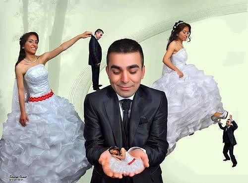 Herkes evlenmeden önce gelinlik ve damatlıkla pozlar verir. Ancak bazı düğün sahipleri işe öyle komediyle yaklaşmış ki bize de gülmek düşüyor 🙂 Bu fotoğraflar tamamen gerçek. Bazıları gülmek için çekilmiş, bazıları da istemeden komik duruma düşmüş gibi görünüyor.