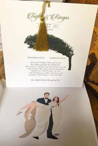 İşte Rüzgar Erkoçlar ve Tuğba Beyazoğlu’nın sade ve zarif düğün davetiyesi