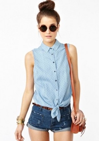Bu yazın en moda ürünleri kuşkusuz kolsuz şifon gömlekler.. İnce yapısıyla sıcak yaz günlerinde tiril tiril bir ferahlık sunuyor. Gömlekler genelde kolsuz ve göbekten bağlamalı şekilde tasarlanmış. Arka tarafları önlerinden daha uzun hatta fazlaca uzun kesime sahip. Çiçekli, kelebekli desenler en çok satılanlardan.