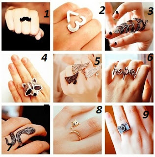 Artık yüzük modasında çığır açıyoruz. Yüzükler öyle yüzük parmağa klasik olarak takılmıyor. Ele geldi hatta düştü düşecek gibi görünüyor. Parmakların hemen uçlarında duran yüzüklerin modası gençler tarafından çok tercih ediliyor. Daha bir asi duruyor. Çok farklı modellerden bazıları işte..